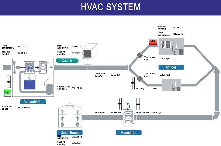 - 除湿機能と加湿機能を組み込んだ空調モデルです。オフィスは2つあります。