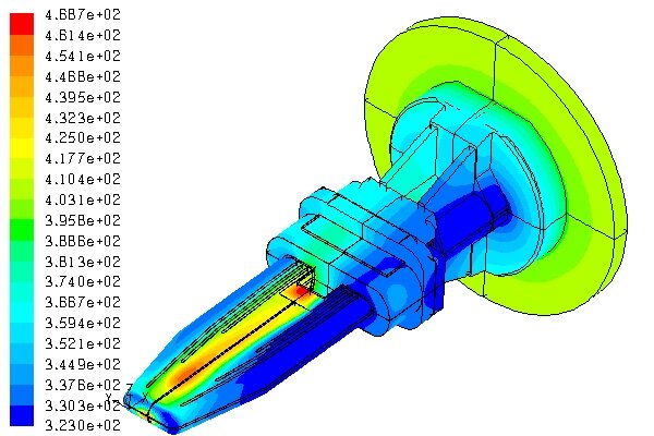 陽子ビーム入射による発熱と水銀流れによる冷却のバランスを評価し、ターゲット材の温度分布を可視化しています。