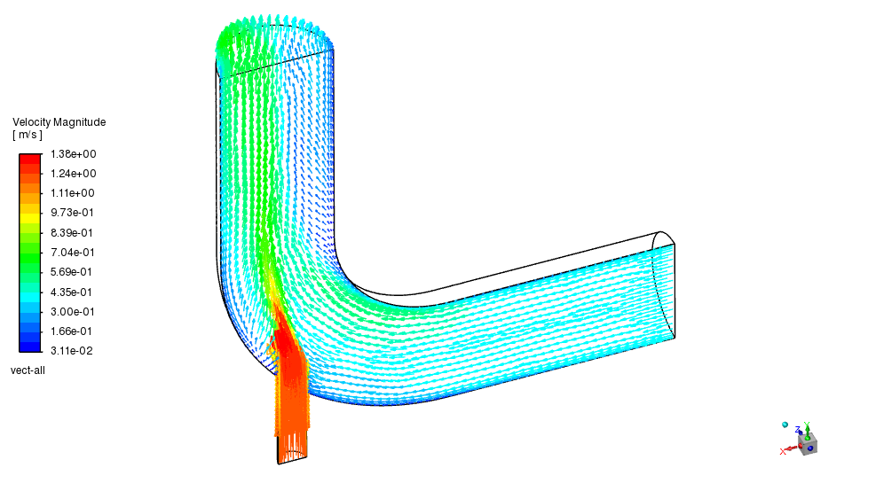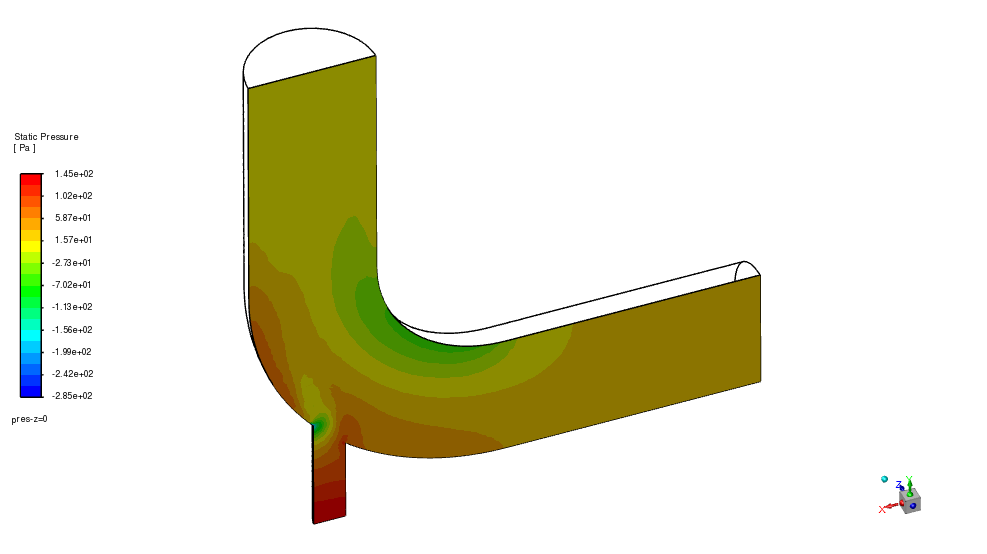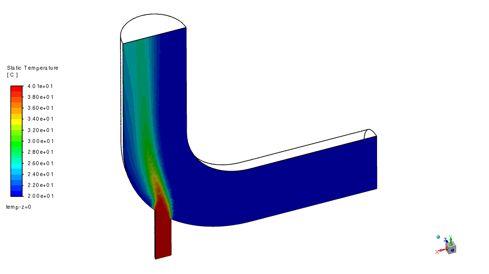 ここでは、fluentのツートリアル例題 mixing-elbow の計算結果を使用します。