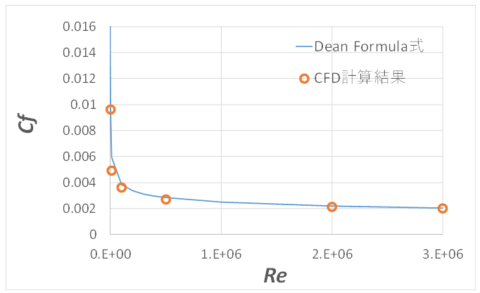 CFDによる計算では以下の式で摩擦係数を算出しています。
