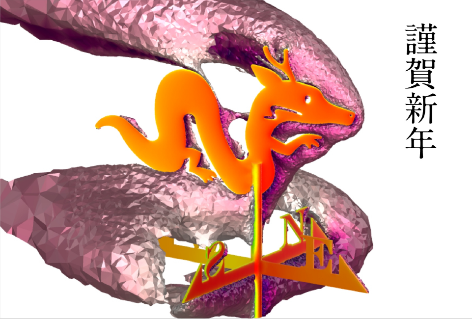 謹賀新年 2024年 By RCCM 一同 January 1, 2024 謹賀新年 2024年 本年も、どうぞよろしくお願いいたします。 📌 この年賀状はAnsys Fluentで風見辰まわりの流れを解析し、 結果をAnsys EnSightで可視化しております。 fluent ensight