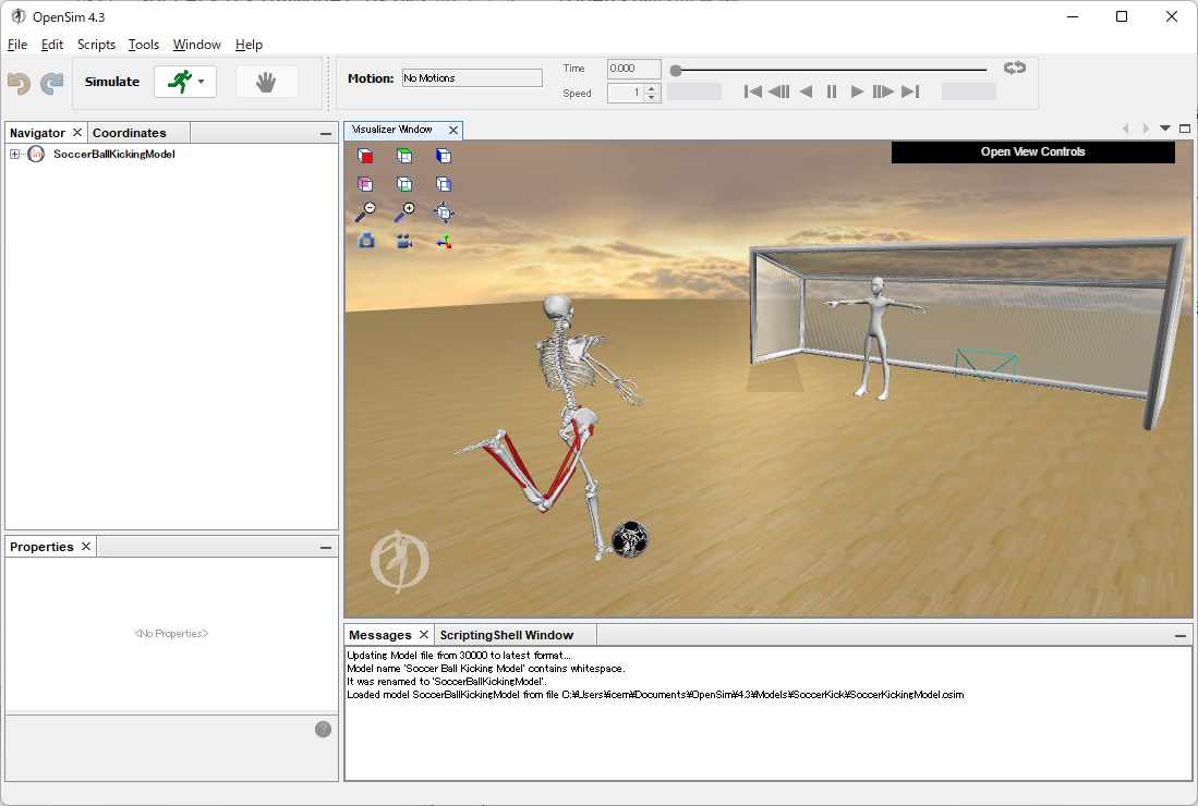 この記事では、オープンソースのOpenSimに含まれる、サッカーボールをキックする例題を使用して、