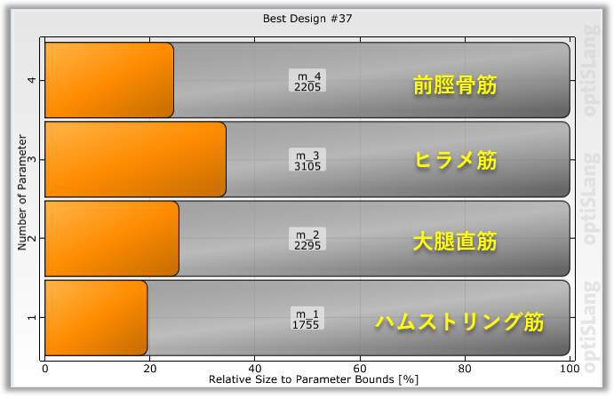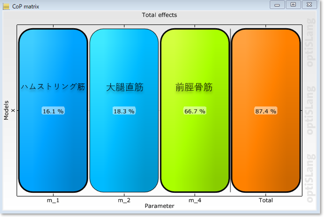 に続けて、「どの筋肉を鍛えたらよいか?」を、Ansys OptiSLangを用いて検討します。