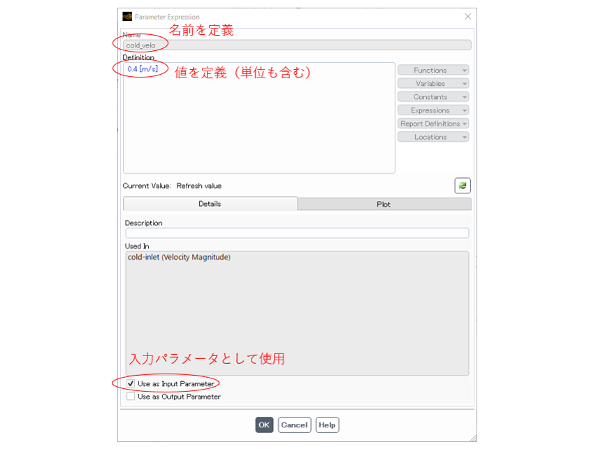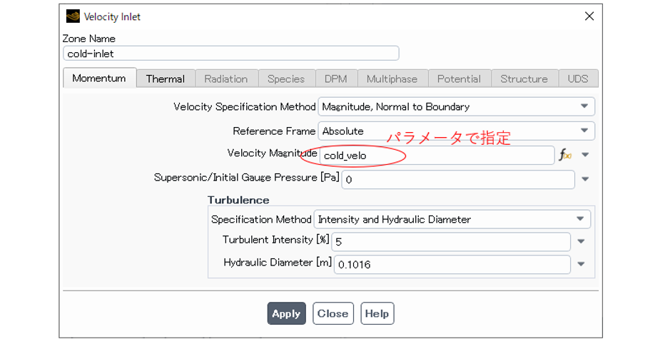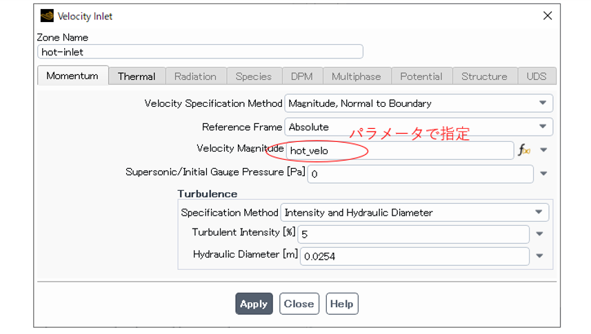 パラメトリック解析を行う場合、まず変数パラメータを含むFluentのcas/datファイルを作成します(基準ケース)。