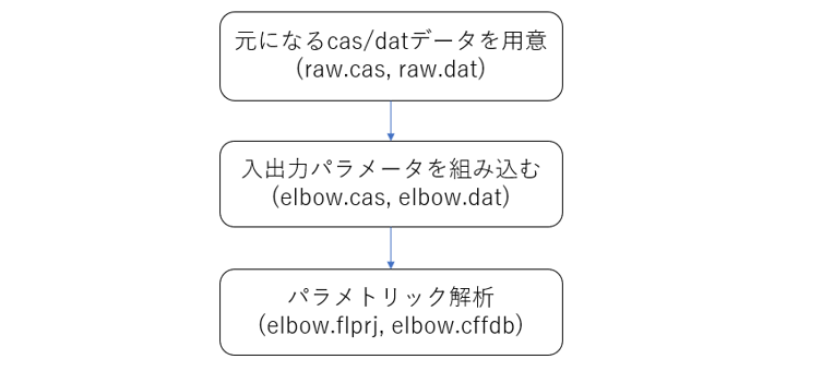 この結果ファイルをelbow.cas、elbow.datとして保存します。