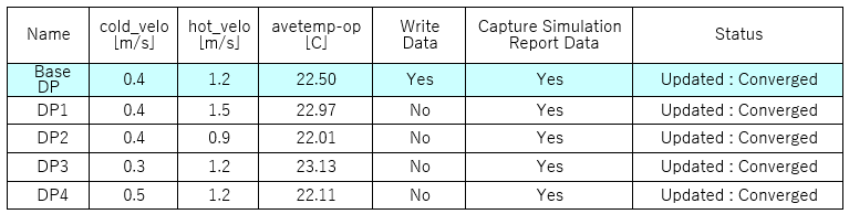 計算結果一覧の最後に、Statusが表示されています。 各設定点の計算が収束して終了したかどうかは、ここで確認することができます。