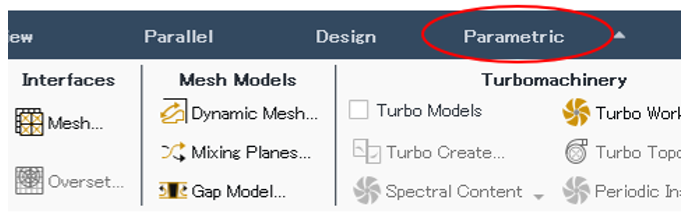 - Fluentを再起動し、GUIのリボンにParametricが表示されていることを確認します。