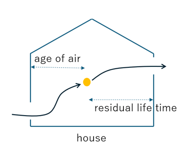 ある流入境界から流入した空気粒子が注目点に到達するまでにかかる時間を空気齢と呼ぶ。