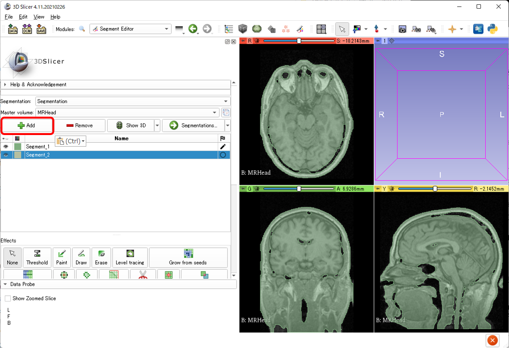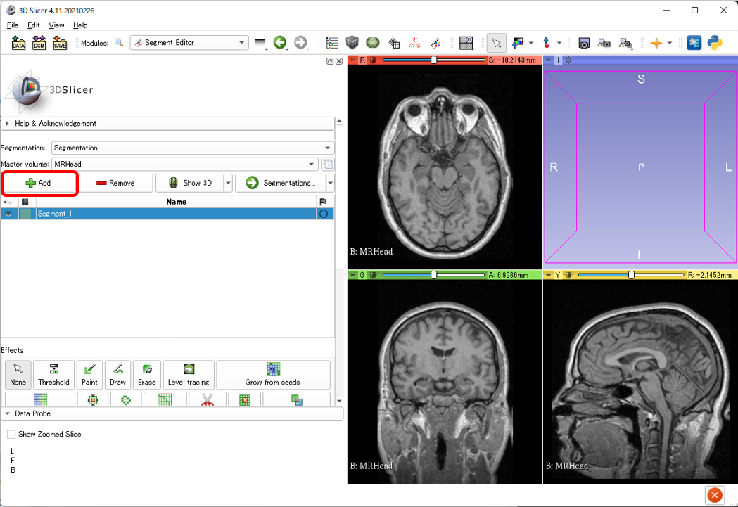 アイコンをクリックして、Segment Editorモジュールを開きましょう。