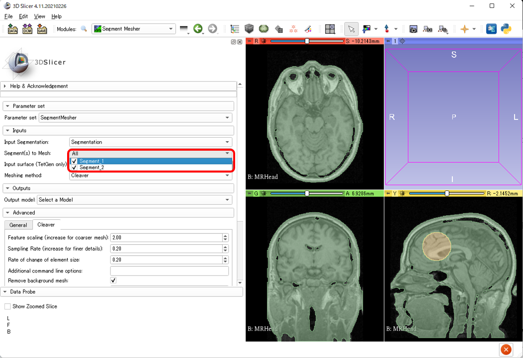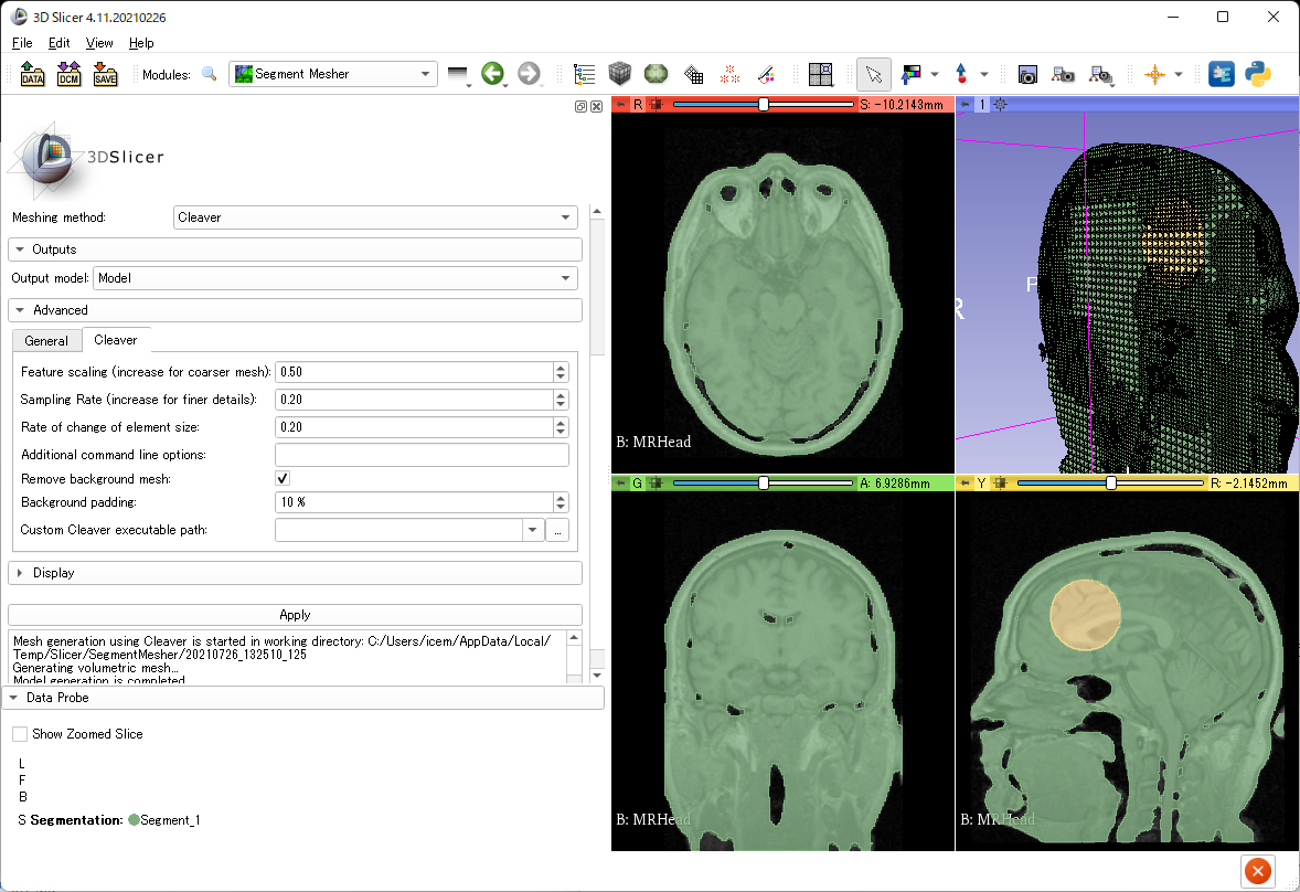 それでは、作成したセグメンテーションにしたがって、Segment Mesherでメッシュを作成しましょう。
