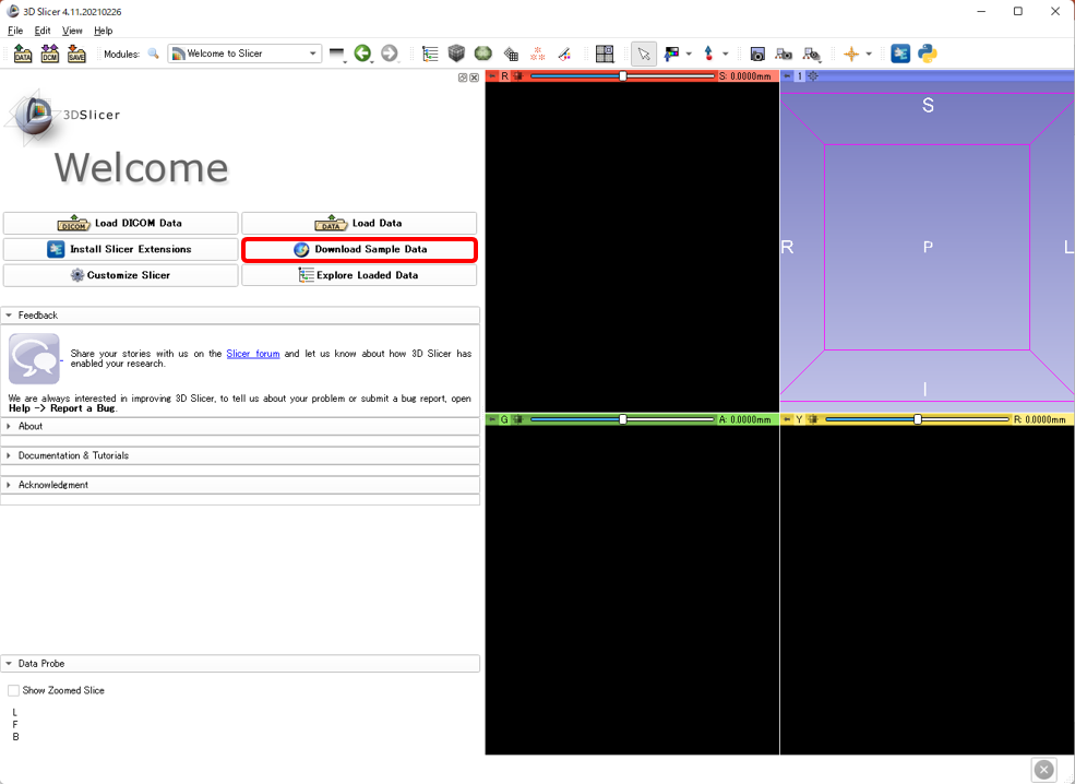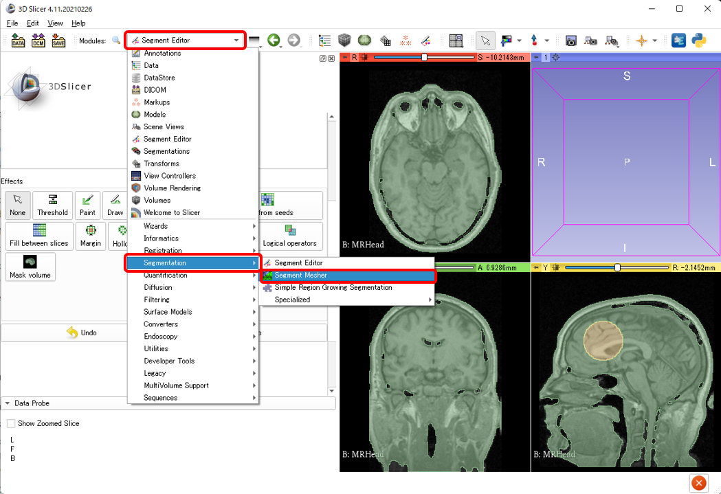 Slicer Segment Mesherがインストールされた3D Slicerを起動します。