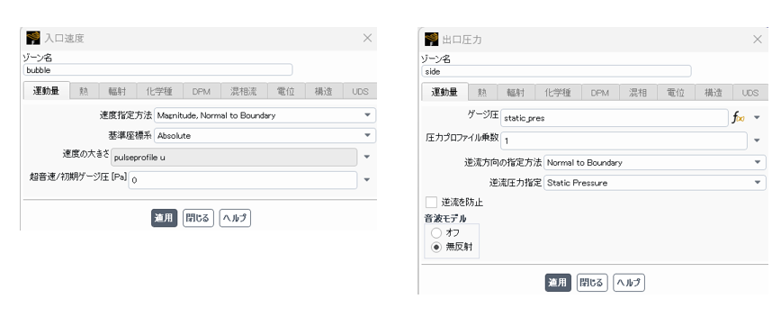 気泡表面では速度を時間パターンデータとして指定した(ttabファイル使用)。