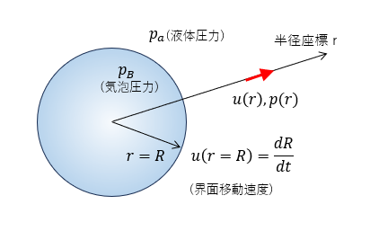 Rayleigh-plesset方程式では、液相を非圧縮性流体と仮定している。