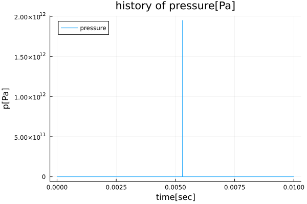 xlabel="time[sec]", ylabel="p[Pa]", label="pressure" )