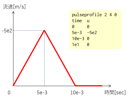 従って、$t=5\times10^{-3}[sec]$において最大値となるような三角形パルス状の半径方向流入速度を仮定した。