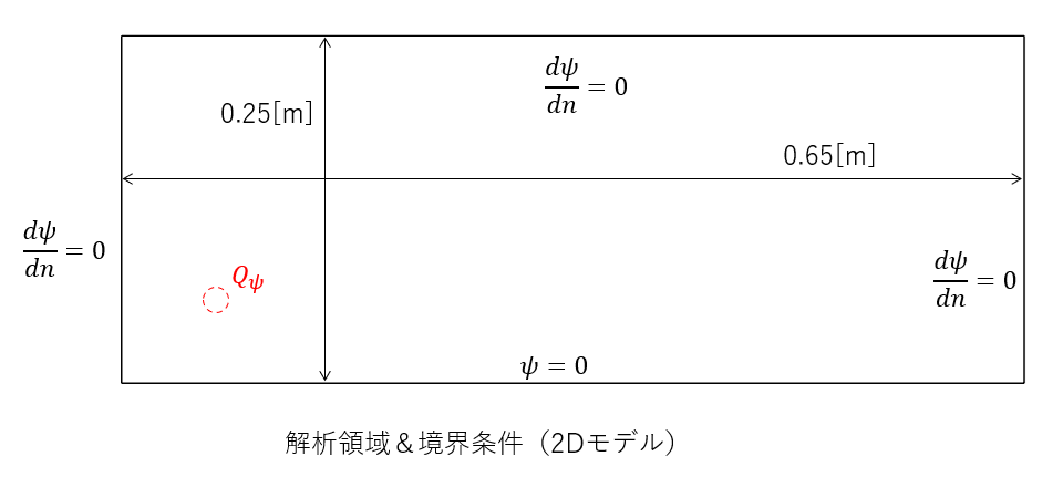 解析対象領域を以下に示す。 $Q_{\Psi}$と書かれた位置に渦管を配置する。