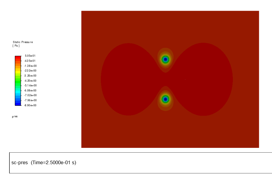 以下に時刻$0.25$秒における計算結果を示す。