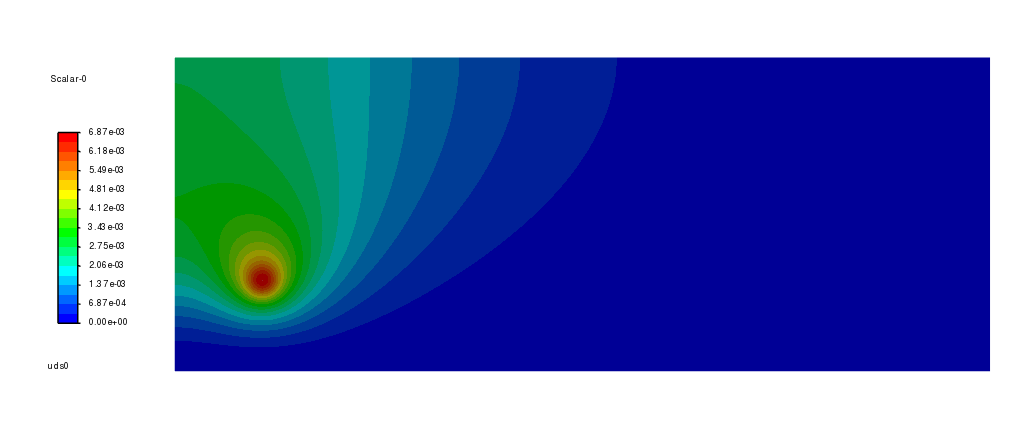 なおこの計算は流速なしで$\Psi$変数(UDS0)のみの線形解析であり、容易に収束解が得られる。