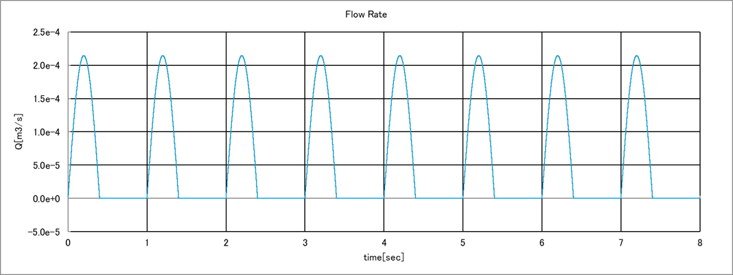 流量値は1拍動当たりの平均的な心拍流量70[mL]から算出した。 ここでは心拍周期は1[sec]とした。
