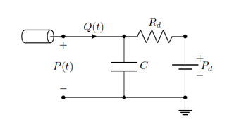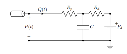 $$ \begin{align} Q(t) = C \frac{d P(t)}{dt} + \frac{ P(t)-P_d}{R_d} \end{align} $$