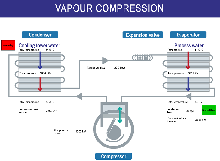 - 蒸発器側は水(Process water)の冷却を目的とします。