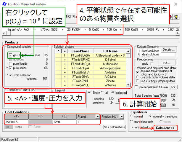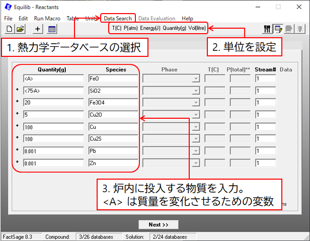 詳細な操作手順は下の枠内にある「FactSage 無料体験セミナー 2024 秋のテキスト」を入手してご確認ください。1 ステップずつ FactSage 8.3 の画面で説明しています。資料ダウンロードの際にはお客様のお名前や連絡先を入力していただきます。