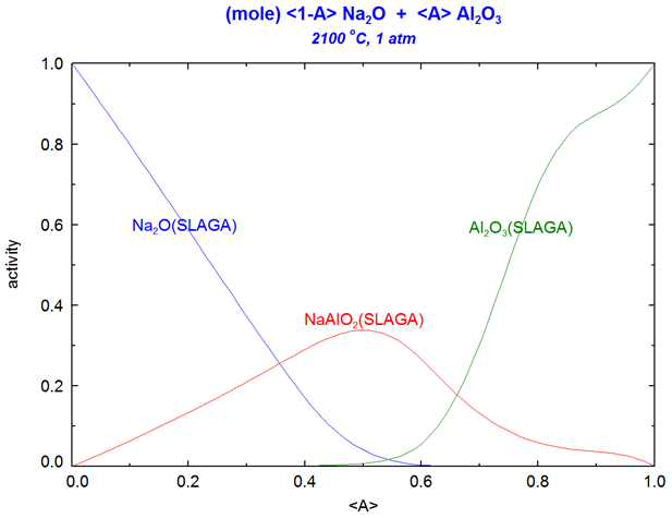 溶融スラグの成分の活量を調べることができます。(熱力学データベース: FToxid)