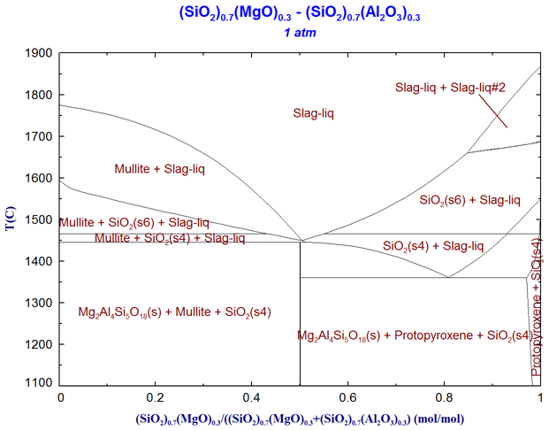 SiO2-MgO-Al2O3 系の擬二成分系状態図